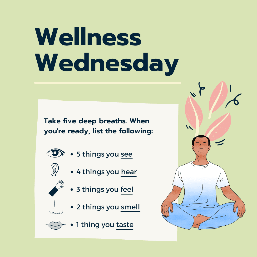 This grounding method aids in reducing stress, enhances mindfulness, and brings clarity—perfect for conquering Hump Day with a refreshed sense of calm and focus.